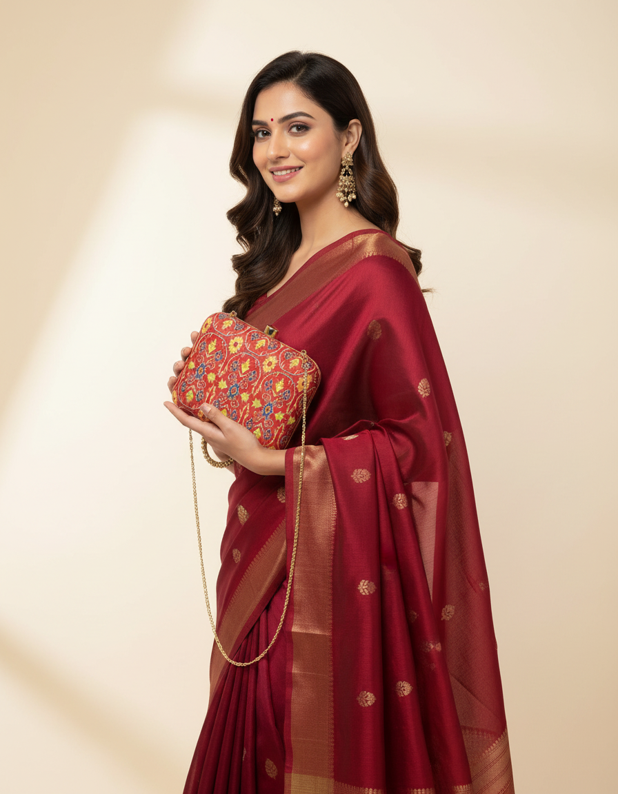 Clutches are a win-win because you can quite literally match them with any and every outfit. From your western attire of classy top, straight jeans, and oversized coats, to your traditional sarees and suits, these little joy bags just make your day fun and lively. Indie Jhola has a superb array of designer clutch bags for every occasion and vibe.